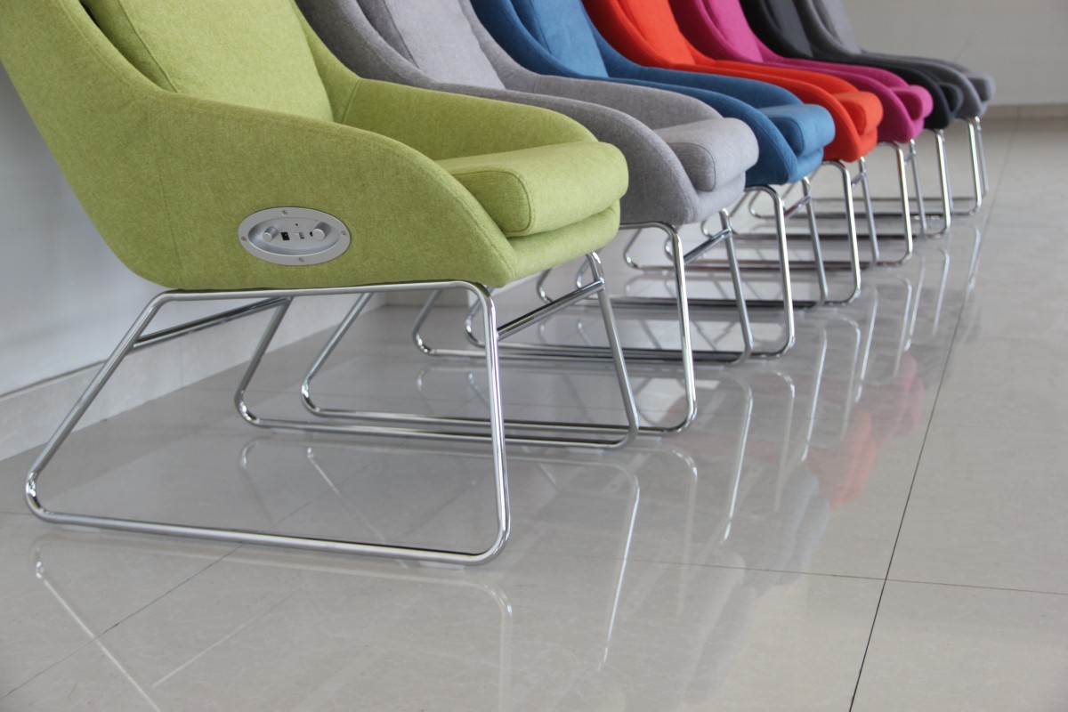 - oblazinjen v kakovostno mehko blago, ki je prijetno na dotik in omogoča udobno sedenje. Na voljo v različnih barvah