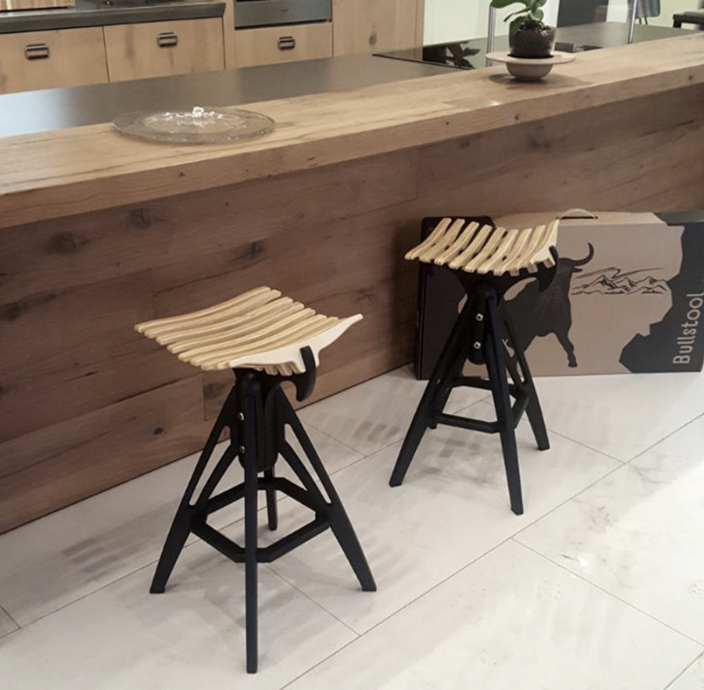 Rebrasto sedišče v profilu spominja na bikove rogove, po katerem je stol dobil ime.