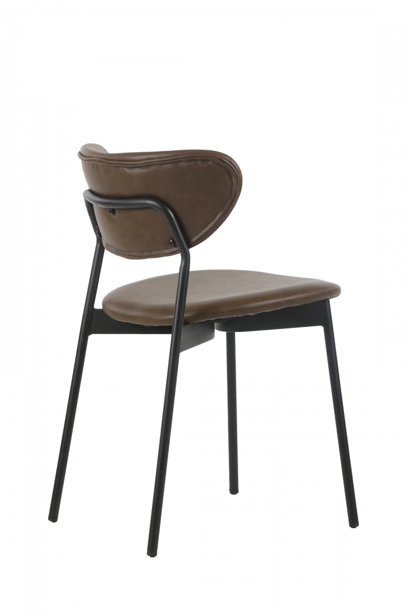 Ergonomsko oblikovan sedež in naslonjalo podpirata držo ter omogočata sproščeno sedenje tudi med daljšimi družinskimi kosili ali večerjami s prijatelji. Rahlo ukrivljeni liniji naslonjala zagotavljata naravno udobje, medtem ko oblazinjen sedež v kakovostne eko usnju vabi k sproščenem počivanju. Površina usnja je odporna proti madežem in prahu, zato je čiščenje enostavno, zadostuje le vlažna krpa, da je vaš stol vedno videti kot nov.