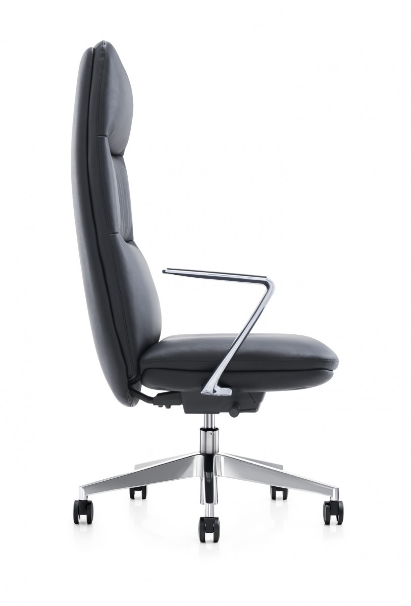 Sedež in naslon sta oblazinjena v pravo usnje, ki prijetno objeme telo in zagotavlja občutek razkošja ob vsakem dotiku. Oblazinjenje je izredno mehko, a hkrati dovolj čvrsto, da nudi odlično oporo hrbtenici ter omogoča udobno sedenje skozi ves delovni dan. Visok naslon zagotavlja popolno podporo tudi višjim uporabnikom, kar omogoča sproščeno držo in zmanjšuje napetost v vratu ter hrbtu.
